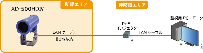 - PoE給電に対応しており、LANケーブル1本でデータ通信、電力供給可能